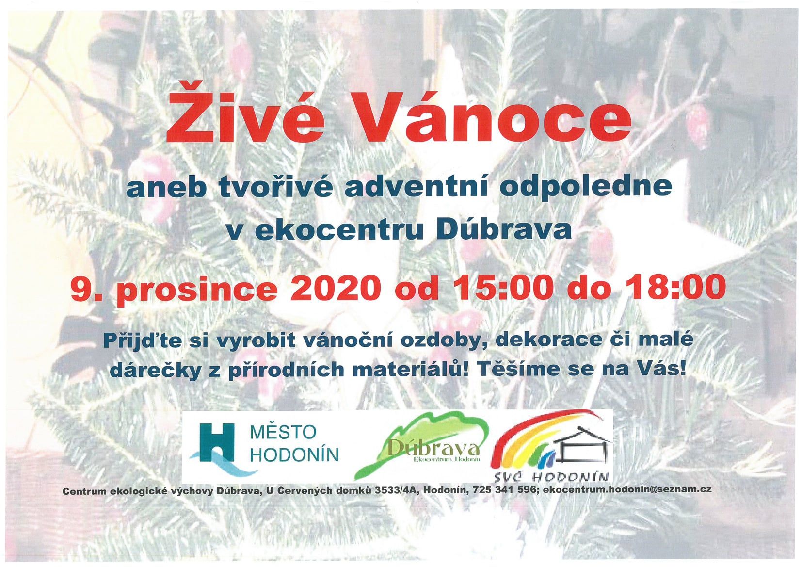 Živé Vánoce, aneb tvořivé adventní odpoledne v ekocentru Dúbrava.