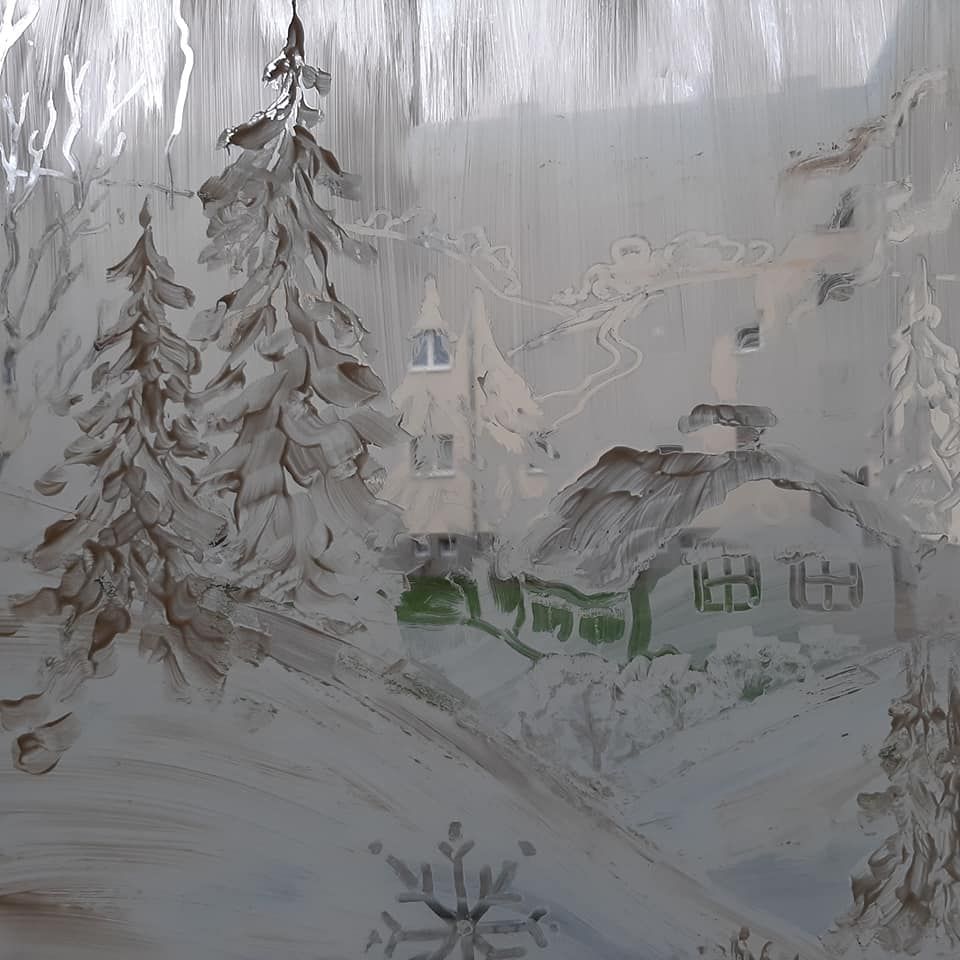 Dnes se u nás na regionálku tvořilo . Poprosili jsme hodonínskou malířku p. Marušku Veselskou, která u nás měla výstavu své olejomalby a pořádá zde své workshopy malování, aby nám pomohla ze zimní výzdobou. Chvilky s ní u nás jsou vždy pozitivní a myslím, že se výzdoba velmi podařila.