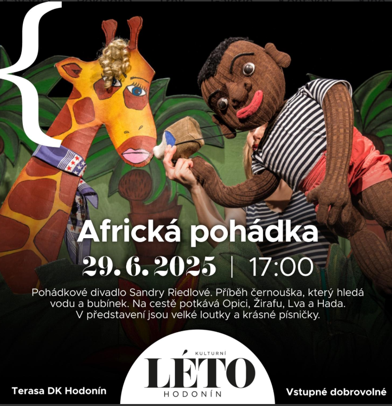 Africká pohádka Africká pohádka: Dům kultury Hodonín, na terase. 29. 6. 2025 v 17:00 hod. Více info ZDE.