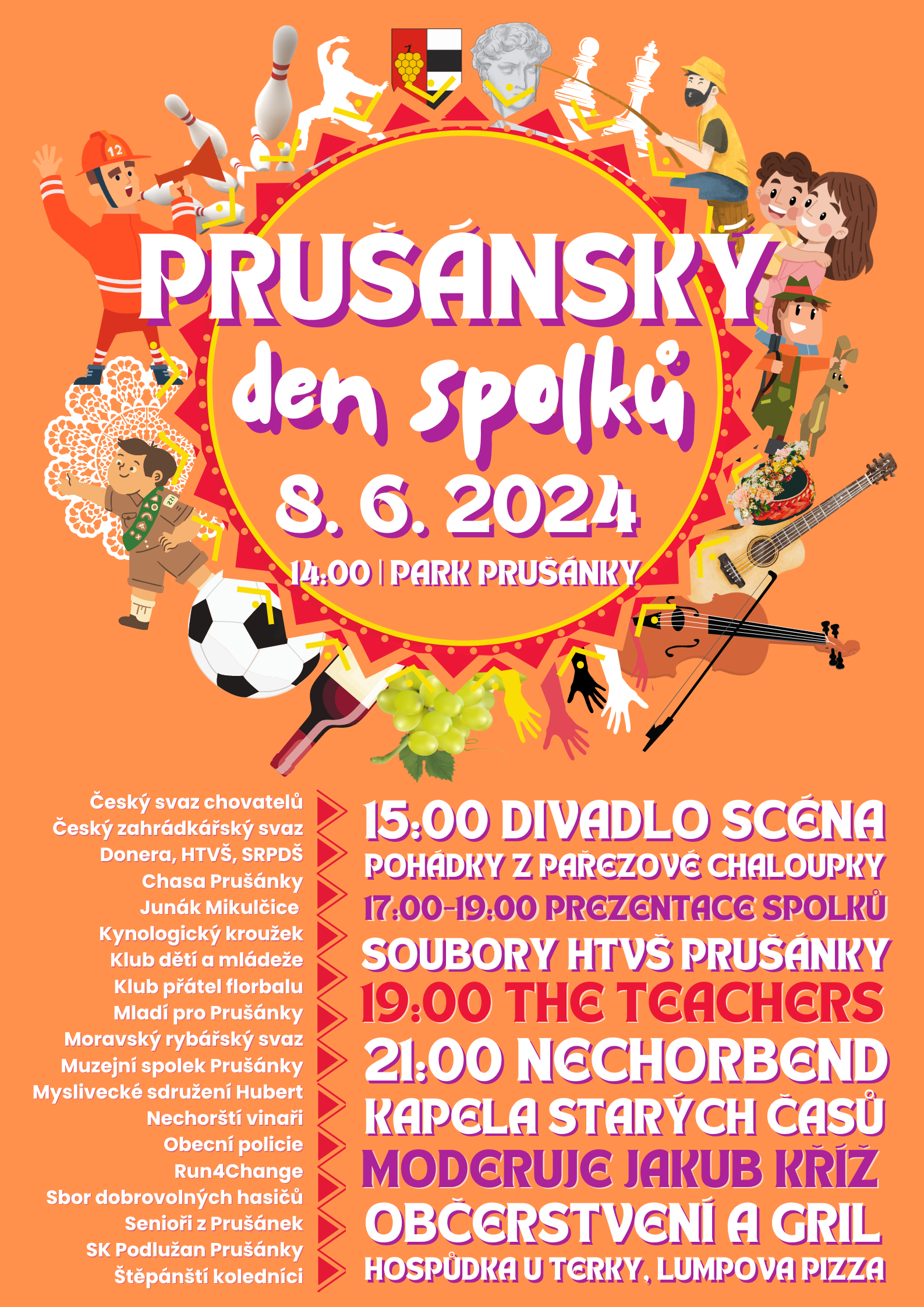 Prušánský den spolků Prušánský den spolků,který se koná 8.6.2025 ve 14.00 hodin v parku u Koupaliště.