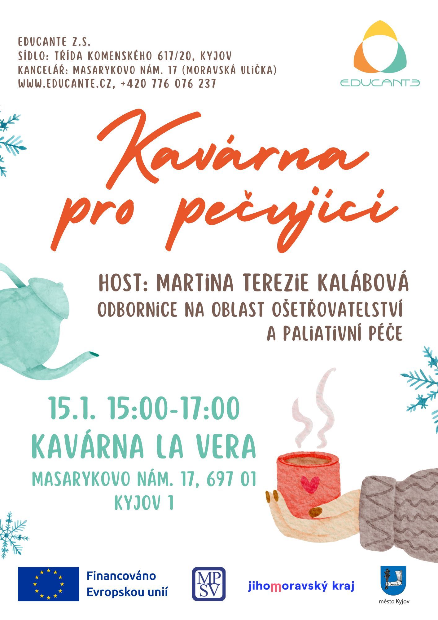 Kavárna pro pečující v Kyjově Vás zve 15.1.2026 od 15.00 - 17.00 hodin na přednášku o ošetřovatelství a paliativní péči